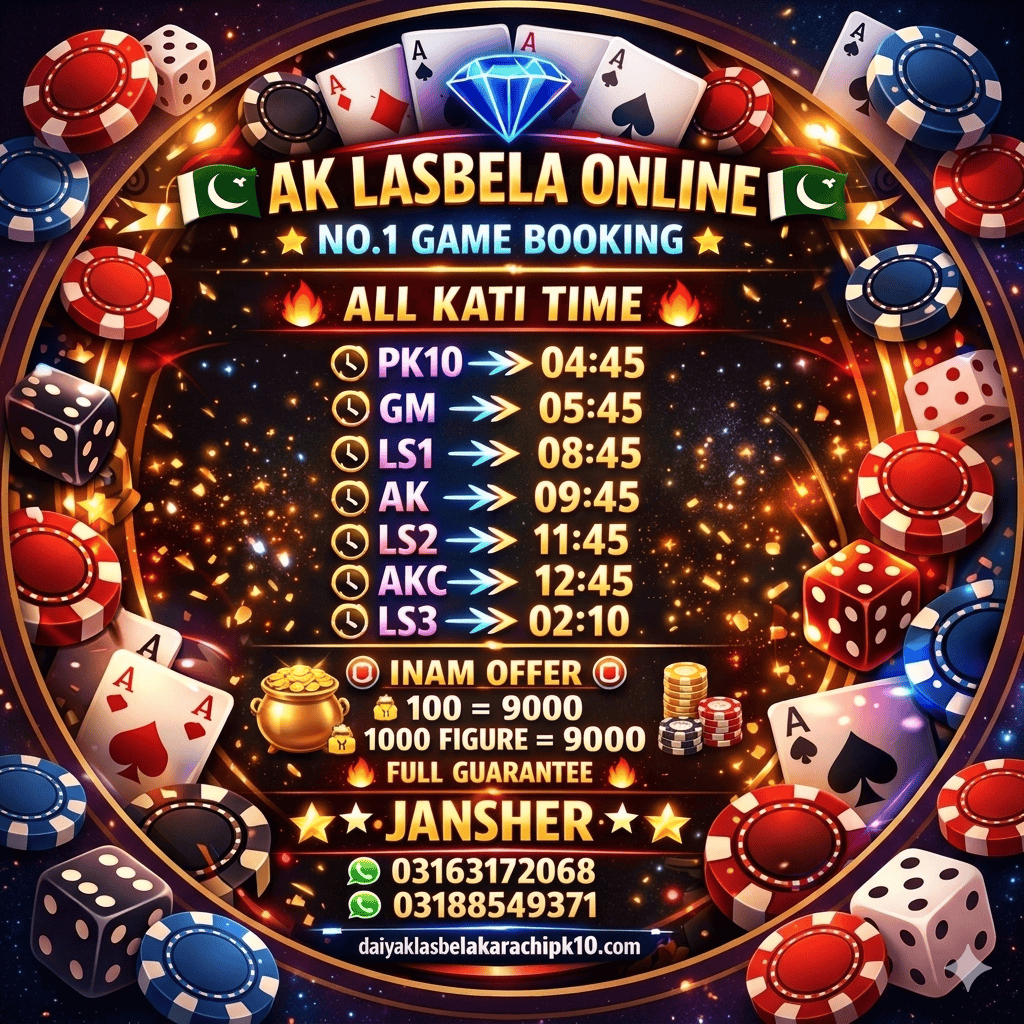 Daily Lasbela online game booking ky Liye Rabta Karen all satta online game booking jari inam Rate 100 per 9000 full inam ki full garnti rabta karo aur jeetny ka moka hasil kro