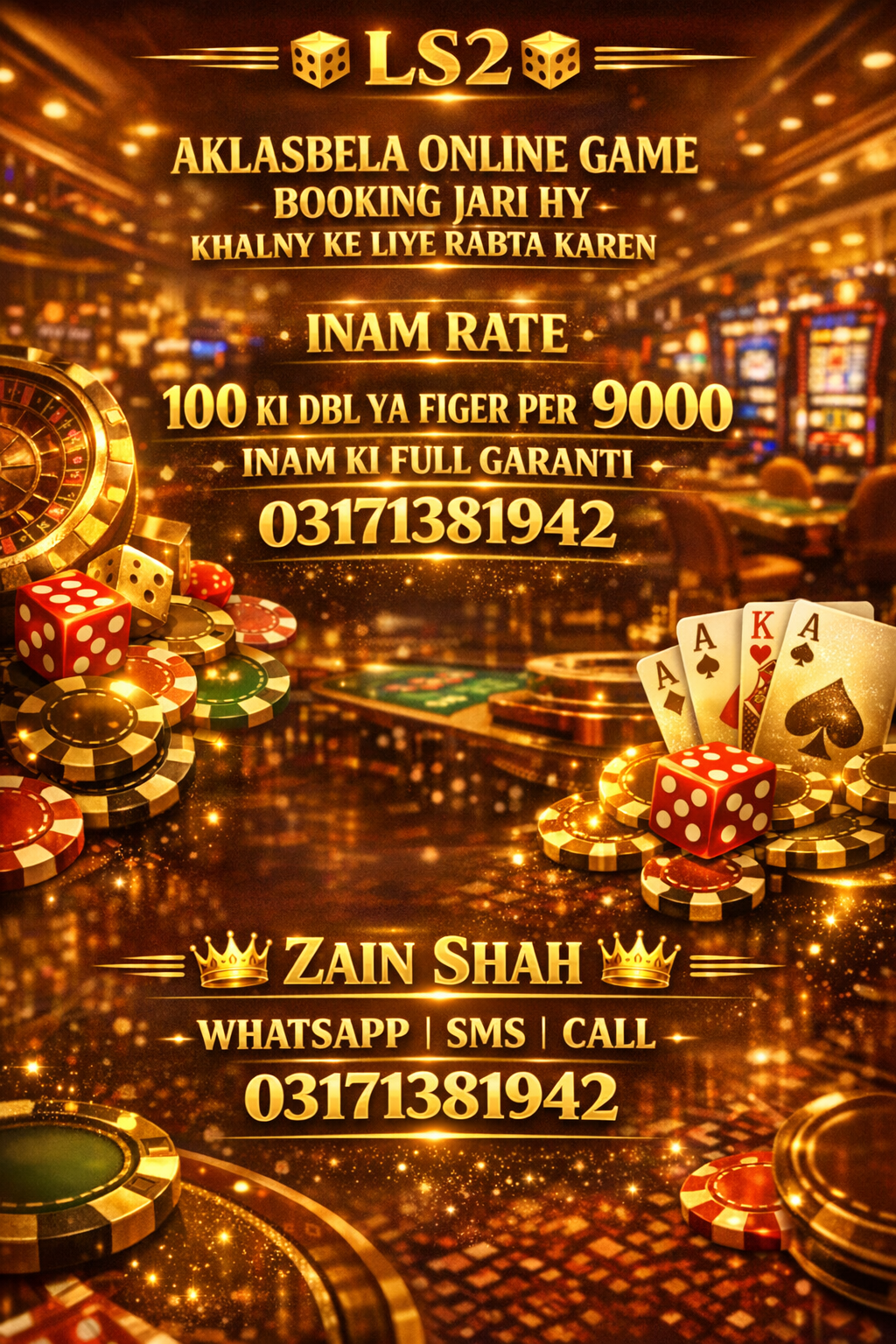 AKLASBELA ONLINE GAME BOOKING JARI HY INAM RATE FULL 9000 JIS BHAI KO GAME BOOK KERWANI HY ZAIN SHAH SY RABTA KRO ACCOUNT BHARO 100 PERSON TRUSTED DEALER